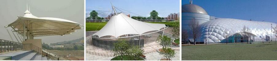 膜结构的设计主要包括体形设计、初始平衡形状分析、荷载分析、裁剪分析等四大问题。通过体形设计确定建筑平面形状尺寸、三维造型、净空体量,确定各控制点的坐标、结构形式,选用膜材和施工方案。初始平衡形状分析就是所谓的找形分析。由于膜材料本身没有抗压和抗弯刚度,抗剪强主芤很差,因此其刚度和稳定性需要靠膜曲面的曲率变化和其中预应力来提高,对膜结构而言,任何时候不存在无应力状态,因此膜曲面形状终必须满足在一定边界条件、一定预应力条件下的力学平衡,并以此为基准进行荷载分析和裁剪分析。膜结构找形分析的方法主要有动力松弛法、力密度法以及有限单元法等。膜结构考虑的荷载一般是风载和雪载。在荷载作用下膜材料的变形较大,且随着形状的改变,荷载分布也在改变,因此要精确计算结构的变形和应力要用几何非线性的方法进行。荷载分析的另一个目的是一确定索、膜中初始预张力。在外荷载作用下膜中一个方向应力增加而另一个方向应力减少,这就要求施加初始张应力的程度要满足在不利荷载作用下应力不致减少到零,即不出现皱褶。因为膜材料比较轻柔,自振频率很低,在风荷载作用下极易产生风振,导致膜材料破坏,如果初始预应力施加过高,膜材涂变加大,易老化且强度储备少,对受力构件强度要求也高,增加施工安装难度。因此初始预应力的确定要通过荷载计算来确定。经过找形分析而形成的摸结构通常为三维不可展空间曲面,如何通过二维材料的裁剪,张拉形成所需要的三维空间曲面,是整个膜结构工程中关键的一个问题,这正是裁剪分析的主要内容。